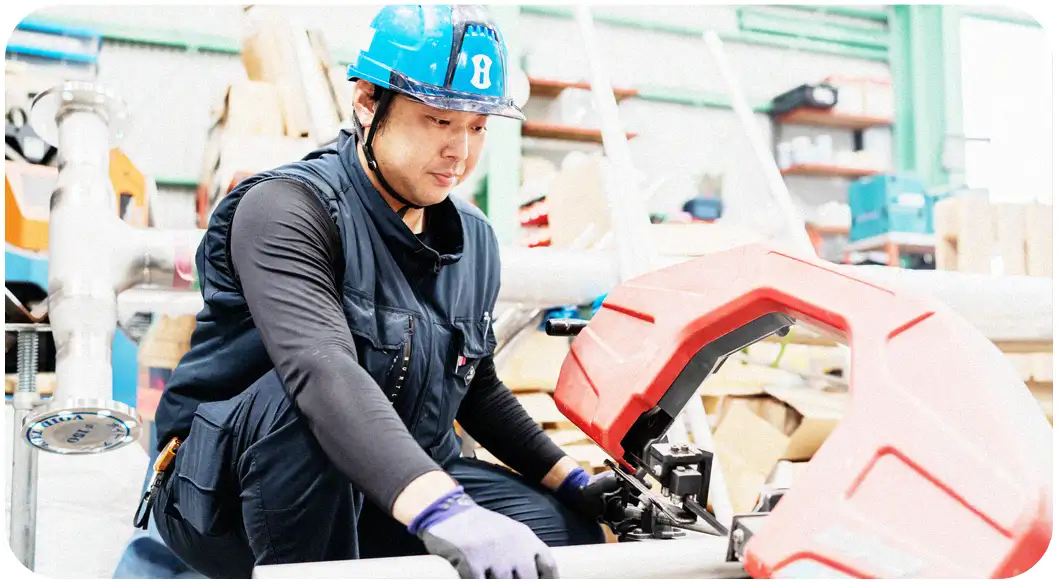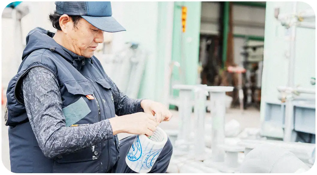 水素設備の建設工事や供給設備の検査工事をはじめ、燃料電池自動車・フォークリフト向け充填設備、水素ガス供給設備といった次世代エネルギー分野のプラント配管工事・検査工事においても、幅広い現場で信頼を得ています。