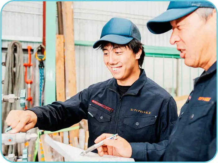 ユーアイプラントは決して大企業ではありませんが、扱っている仕事の内容や取引先を見れば、その将来性の大きさを実感できると思います。実際に僕自身も、まったくの未経験でこの会社に入社しました。当初はわからないことばかりで不安もありましたが、先輩方が丁寧に教えてくださり、少しずつできることが増えていきました。今では様々な作業を任せてもらえるようになり、入社当時には想像もしていなかったほど多くの資格も取得することができました。